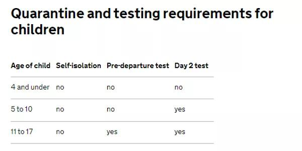 11岁至17岁的学生需要证明核酸检测呈阴性才能前往英格兰(10岁及以下的儿童可免于此要求),5至17岁的学生必须在第2天或之前进行核酸检测。更多信息请见政府的检疫和测试指南。